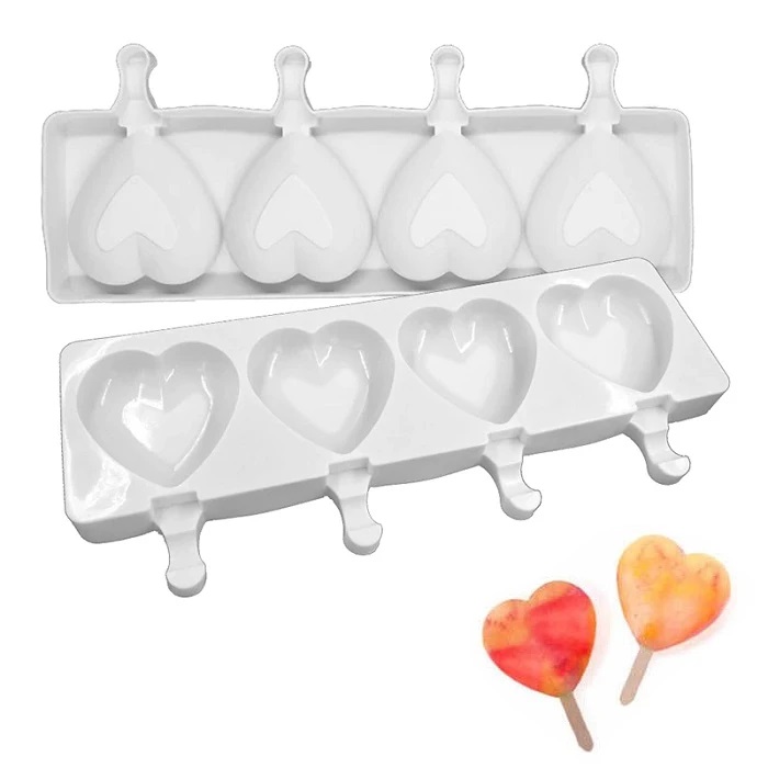 Форма для леденцов и мороженого «Сердца», 39×15 см, 4 ячейки (9,2×8,4 см).