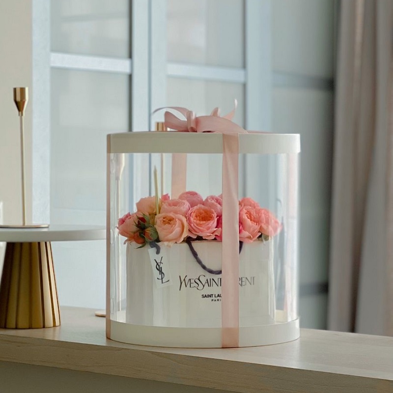 Коробка для торта диаметром 30 см и высотой 30 см с прозрачным окном - цилиндр. Окно изготовлено из прочной ПЭТ пленки, не позволяющей коробке деформироваться.