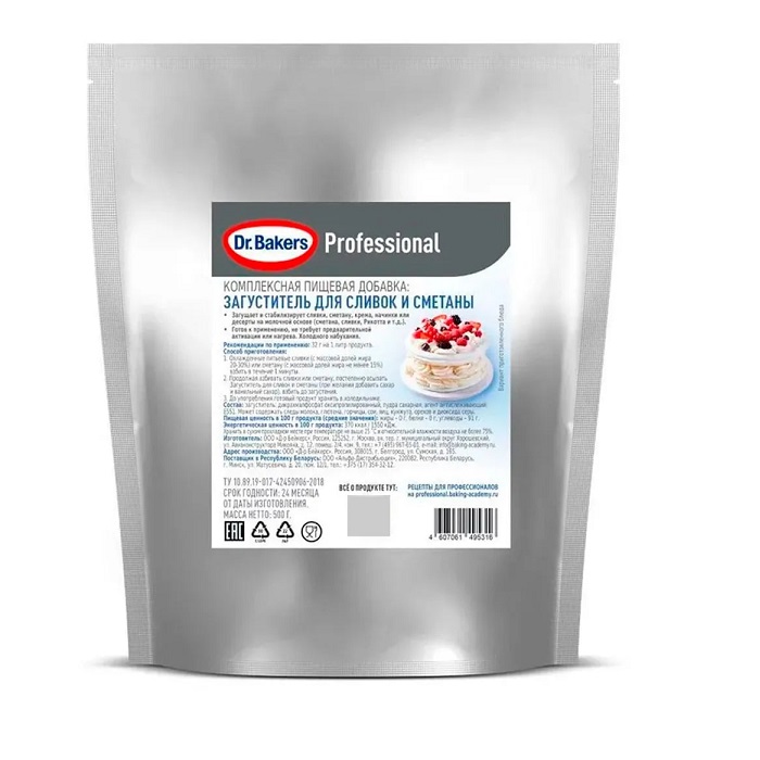 "Загуститель для сметаны" от Dr. Bakers позволяет гарантировано превратить пол-литра сметаны в плотный, воздушный крем всего за пару минут. Подходит для сметаны различной жирности.